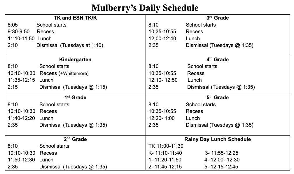Mulberry Daily Schedule